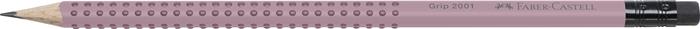 Grafitová ceruzka, B, trojhranná, s gumou, FABER-CASTELL "Grip 2001", ružová