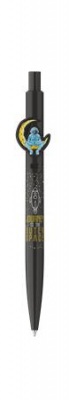 Guľôčkové pero, 0,8 mm, stláčací mechanizmus, ICO "Astronaut", čierne-čierne