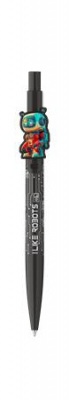 Guľôčkové pero, 0,8 mm, stláčací mechanizmus, ICO "Robot", čierne