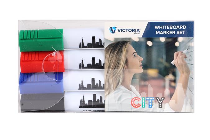 Popisovač na tabule, sada, 1-3 mm, kužeľový hrot, VICTORIA VISUAL "City", 4 rôzne farby