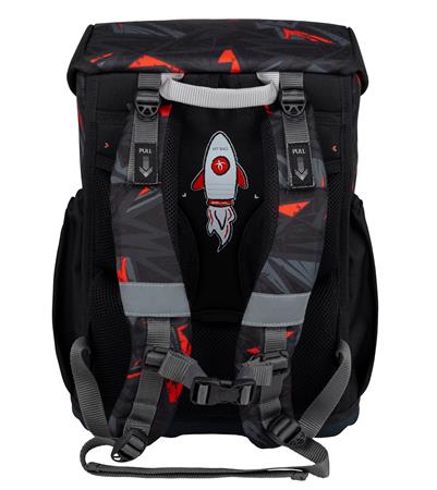 2 vnútorné priehradky (vhodné pre knihy formátu A4) + 2 bočné vrecká (na dáždnik a fľašu s objemom 0,7 litra) + 1 priehradka na desiatu