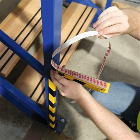 Samolepiaci flexibilný rohový ochranný profil z polyuretánovej peny - pre vnútorné použitie - poskytuje ideálne riešenie vo výrobných priestoroch, dopravných oddeleniach a skladoch, pivniciach, schodiskách, garážach, stenách, trámoch, regáloch a skriniach, ako aj strojoch, skladoch vozíky atď. -označuje nebezpečné miesta, chráni povrchy, steny a zmierňuje poškodenia spôsobené nárazom -profily je možné skrátiť na požadovanú dĺžku ostrým nožom -na výrobku používame farby podľa ASR A1.3, ktoré zodpovedajú RAL 1004/9003 farby (marker žltý/ marker čierny) - trieda E požiarna odolnosť podľa normy DIN EN 13501-1 - tepelná odolnosť od -30°C do + 70°C - dĺžka profilu 1 m - lepiaca plocha: 19 mm na oboch stranách